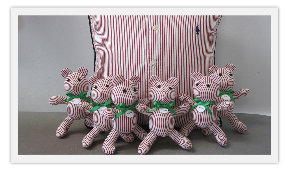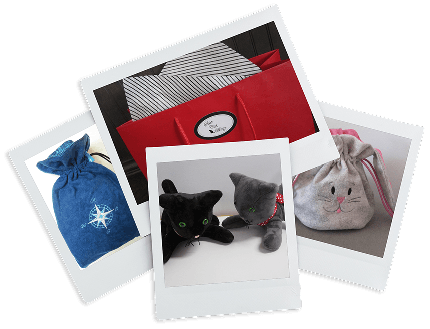 Through the years, fabric items that are “not a bag” have been added as client requests. Just like creating a gift bag with a custom fabric and detail, all of these designs follow the Satt Cat Bag personalization criteria. As these designs are created, Satt Cat Bags focuses on the client needs to create just that personal touch and detail. It doesn’t get more personal than a Memory Bear or Pillow. Since 2017, these have been made using clothing to memorialize a loved one or special event. Accessories are then made to enhance the personality of the loved one to make a truly special memory. Since 2023, Bobbin as the Personal Cat of Satt Cat Bags has even been joined by many “friends”.