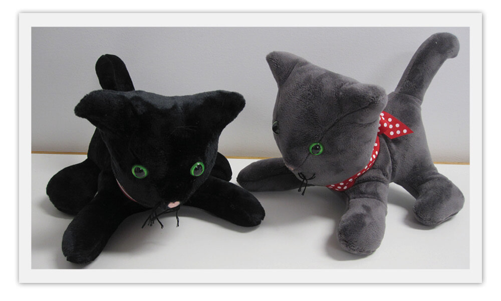 Through the years, fabric items that are “not a bag” have been added as client requests. Just like creating a gift bag with a custom fabric and detail, all of these designs follow the Satt Cat Bag personalization criteria. As these designs are created, Satt Cat Bags focuses on the client needs to create just that personal touch and detail. It doesn’t get more personal than a Memory Bear or Pillow. Since 2017, these have been made using clothing to memorialize a loved one or special event. Accessories are then made to enhance the personality of the loved one to make a truly special memory. Since 2023, Bobbin as the Personal Cat of Satt Cat Bags has even been joined by many “friends”.
